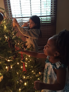 You might be wondering why we can't just explain it to her. Believe me, we reassure often. But the thing is, you can't talk children out of trauma. Childhood trauma is an ugly thing that causes false beliefs and survival behaviors. The hope is that time and growing trust will negate most of the insecurities, but in the meantime, we do things different. Right after the program, we had to head to the high school for the rest of the JV and Varsity boys basketball games. KA wanted to play with my hair, which she tends to do when she feels anxious. So right there in the middle of many people at a basketball game, she was running her fingers through my hair, twisting it, fluffing it, you name it...and all the while she was singing her Christmas songs in my ear. To some, it may have looked like a mother not attending to a child making a mess of her hair; in reality, it was a mother allowing her child to perform her Christmas program in safety.